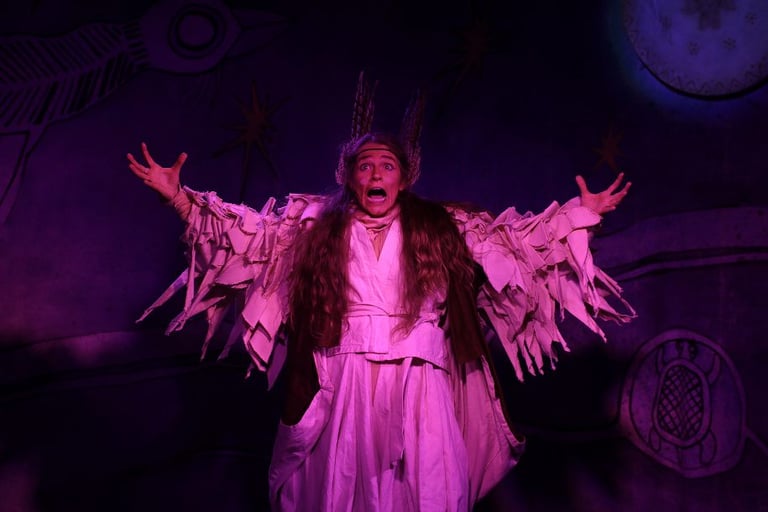 Le décor est formé d'une grande toile peinte par un Amérindien